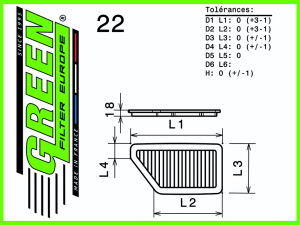 dit luchtfilter heeft de afmetingen D1/L1: 401mm - D2/L2: 354mm - D3/L3: 171mm - D4/L4: 136mm - D5/L5: ──mm en H= 24