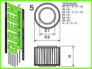 dit luchtfilter heeft de afmetingen D1/L1: 284mm - D2/L2: ──mm - D3/L3: 169mm - D4/L4: ──mm - D5/L5: ──mm en H= 23