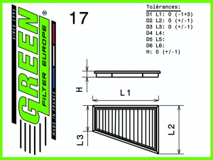 dit luchtfilter heeft de afmetingen D1/L1: 225mm - D2/L2: ──mm - D3/L3: 166mm - D4/L4: ──mm - D5/L5: ──mm en H= 23