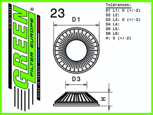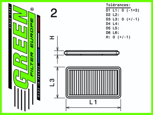 dit luchtfilter heeft de afmetingen D1/L1: 308mm - D2/L2: ──mm - D3/L3: 229mm - D4/L4: ──mm - D5/L5: ──mm en H= 32