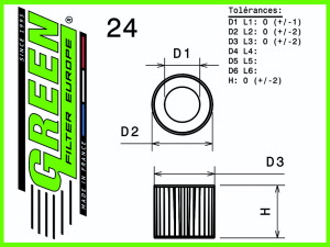 dit luchtfilter heeft de afmetingen D1/L1: 110mm - D2/L2: 220mm - D3/L3: 220mm - D4/L4: ──mm - D5/L5: ──mm en H= 145