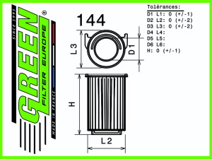 dit luchtfilter heeft de afmetingen D1/L1: 70mm - D2/L2: 135mm - D3/L3: 135mm - D4/L4: ──mm - D5/L5: ──mm en H= 183